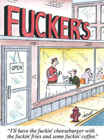 "I'll have the fucking cheeseburger with the fuckin fries and some fuckin coffee."