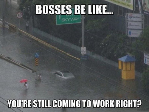 This is a photo of the recent flood that plagued my home country, The Philippines. Although it was a devastating event, the caption just really made me laugh.