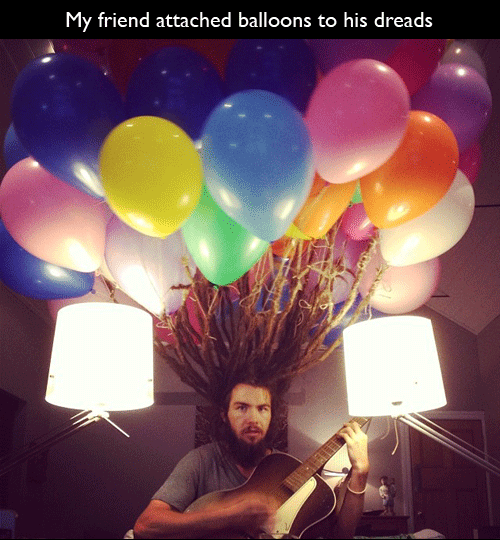 Do you have dreadlocks and looking for a creative way to have fun with them? Attach balloons to the ends and watch them fly!