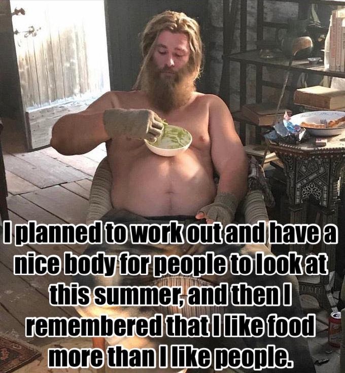 I planned to work out and have a nice body for people to look at this summer, and then I remembered that I like food more than I like people.