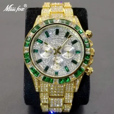 This dazzling gold Techno KING quartz watch & jewelry set is pure bling that’ll turn heads wherever you go! 🔥 The watch features a sparkling diamond‑encrusted bezel, gold‑tone case with three stylish sub‑dial chronographs, and a shiny metal band that matc