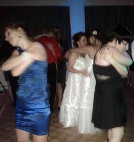 I think these girls could use some partners or better yet just swing around and dance with the girl behind you. It's better than hugging yourself.