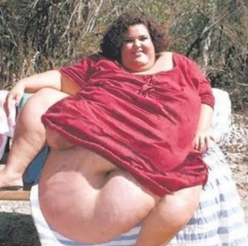Wow that's one big belly on this lady. If you can pinch more than an inch you probably should cut back on calories. Her stomach looks like a big giant swinging donut.