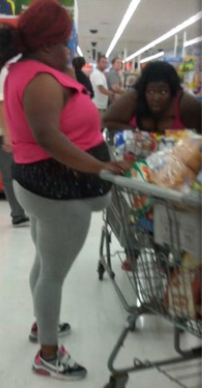 These yoga pants are look like they were sprayed on. The other girl is so shocked her eyes are popping out of her head!