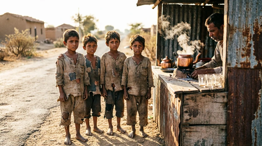Four poor children and a tea stall