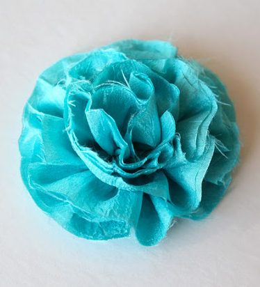 Cut the fabric approximately 2 1/2 inches wide and as long as you wish. For flower, Icut the length from selvage edge to selvage edge on fabric (so, approx. 45 inches long).