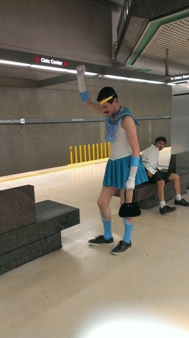 Freddie Mercury is alive and well and he takes the subway! You would think that he would starting singing Queen hits again but maybe he just likes to relax on the subway.