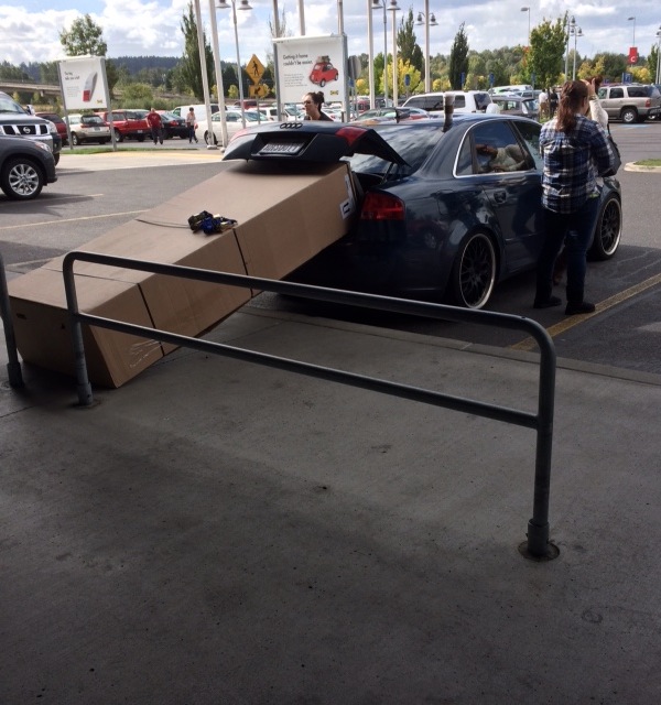 Free Home Delivery Fail at Walmart. Huge Box. Small Car Trunk. Tiny Brain.