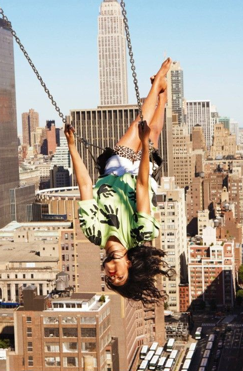 Swinging on a swing over like 20 stories high. The filling that you get when you are up that high is like you are flying and nothing else matters