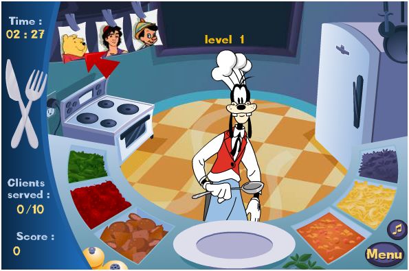 Help Goofy prepare the meal for some Disney Character.