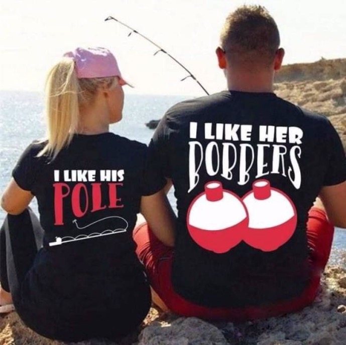 Fishing is so much better when it's done as a couple! I like his pole. I like her bobbers.