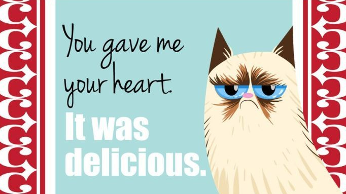 Grumpy Cat Valentine’s Day cards You Gave me Your Heart