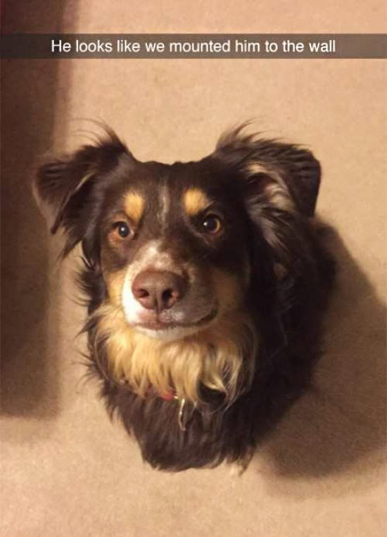 This adorable dog wouldn't probably be smiling if it knew that it looks like its head was mounted on the wall!