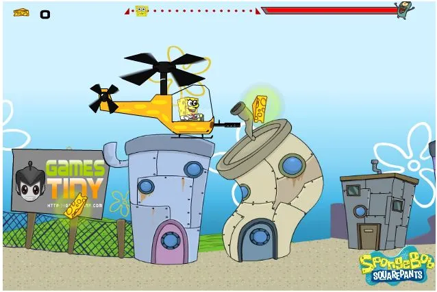 Spongebob loves flying with helicopter.Help him finishes his flying course and shoot all the energy down.