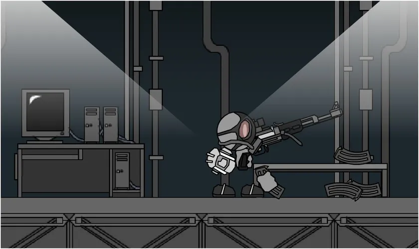 | Controls: | A / D - Left / Right movement. W - Jump. S - Duck. E / Q - Cycle weapons. Mouse - For aiming and shooting. |