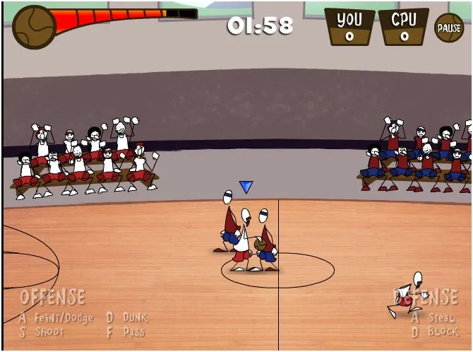 | Controls: | Arrow keys to move. Offense: A-dodge. S-shoot. D-dunk. F-pass. Defense: A-steal. S-block. |