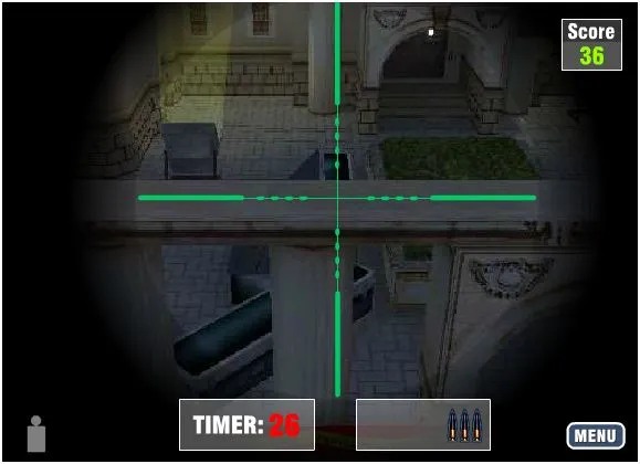 | Controls: | Aim = Mouse Shoot = Left Click Toggle Sniper Mode = Space Bar Reload = Shift Key |