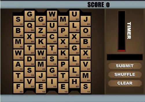 Click on adjacent letters to build words. Submit each word for points. Kinda like Scrabble.