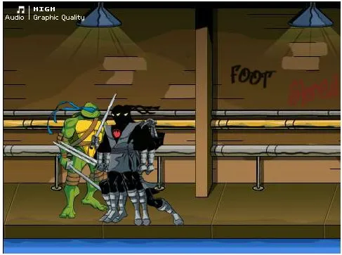 | Description: | Master splinter has been kidnapped! Go to Shredder's lair, defeat him and rescue splinter. Collect the destabilizer pieces at the end of each level to gain access to the lair. |