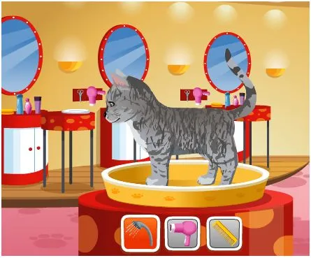 Help Marta, pet stylist, to make her clients look good. Wash them, use the hairdryer and comb them, and then choose a fun outfit.