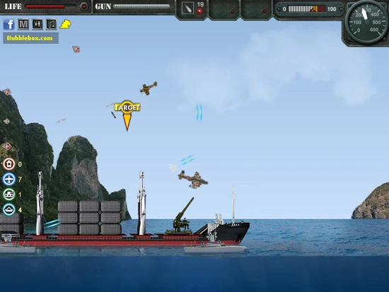 Bomb enemy ships to the bottom of the see while dog-fighting enemy planes.