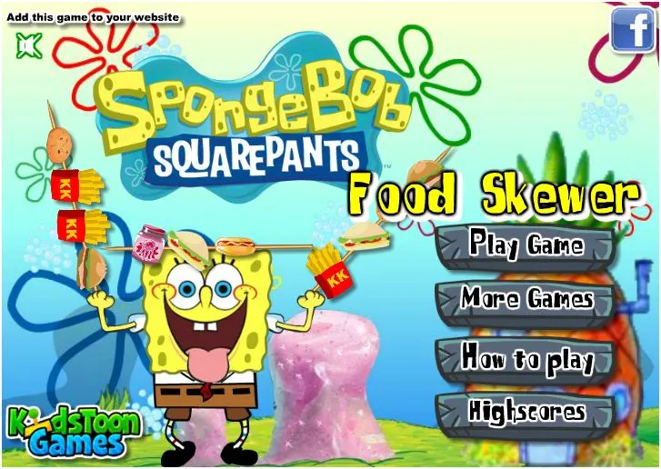 Spongebob is so hungry that he want to eat anything he see.Here, He stops by a BBQ shop where he can pull different food on a stick and at it as a whole. Help Spongebob grab three identical food on at once and eat it.