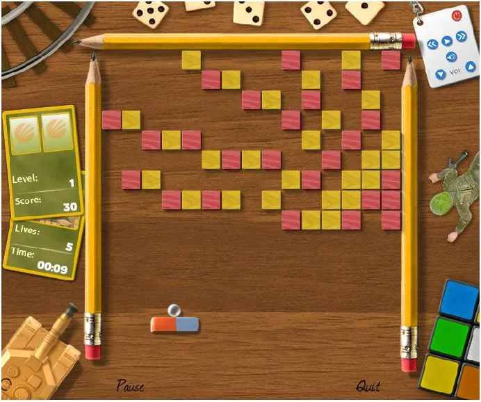 A new spin on a classic arcade game! Bounce the ball back and forth and hit the blocks! Collect power-ups to eliminate all the blocks!