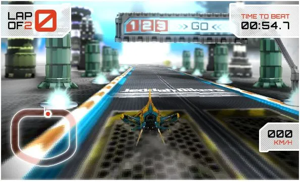 Highly rated 3D futuristic racer with speed boosts and drifting physics. The player competes against the clock or NPC opponents on multiple tracks. Fast hypnotic thrillride.