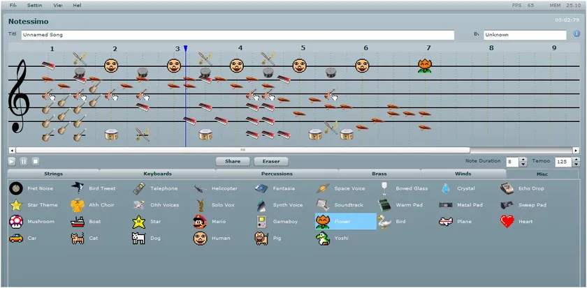 | Description: | Create your own music in this unique flash game that feature a friendly user interface similar to the classic game Mario Paint ! |