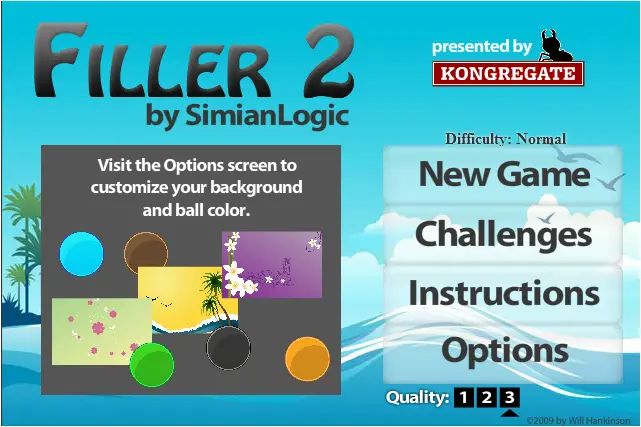 | Description: | Filler is back with improved graphics, improved physics, three difficulties, and 100 challenges to keep you busy! Your goal is still the same: fill 2/3 of the level to advance. For added strategy, play the game on Normal and press space to freeze the ball |