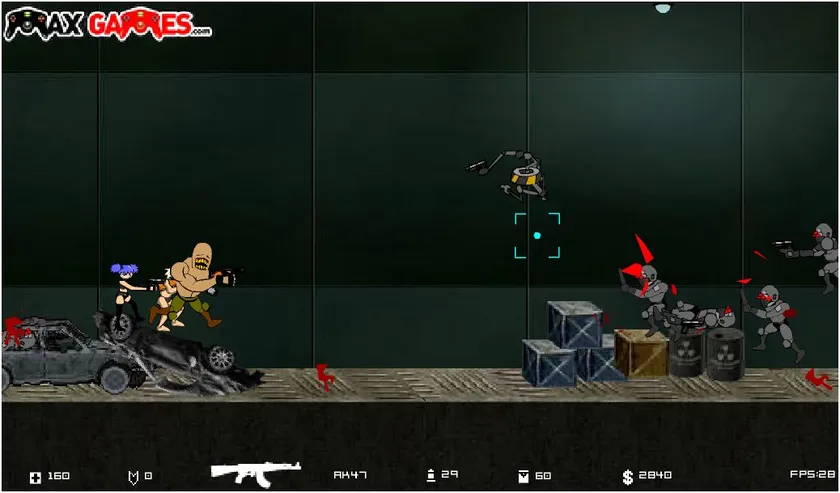 | Controls: | W,A,S,D,keys - To Move. (hold down for a second then jump for super-jump) Mouse key - To control attack direction / Left Click Attack 1,2,3,4,E - To switch weapons R - To reload G - To drop weapon Q - To see current condition and set up Space bar - |