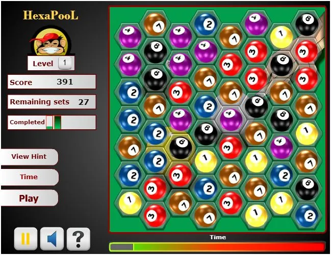 Different colored pool balls are falling from the top of the screen. To remove them, get 3 or more of the same colored pool balls in a row vertically or diagonally.