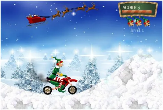 Ride your bike or four wheeler as an elf. Perform stunts and grab as many gifts as possible.
