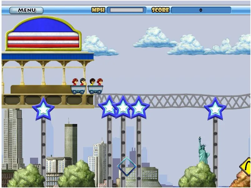 15 levels of controlling a rollercoaster. Don't go to fast or they fly off the track!