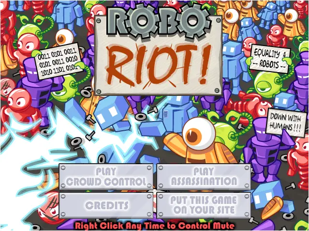 | Controls: | In Crowd Control, click to start drawing a rectangular electrocution field and click to use the power surge when all 4 corners have the same robot color. In Assassination, click to shoot a robot. The target will glow red when you kill an innocent, so lo |