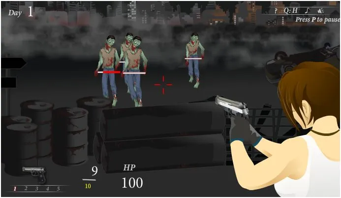 Hold position behind the barricade as you blast zombies. Earn gold to upgrade & buy new guns.
