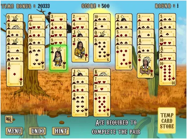 Help Chief Eagle's tribe to build as many totem poles as possible in this card inspired by the popular pyramid solitaire.
