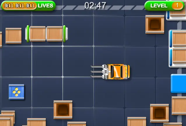 | Controls: | Use arrow keys to drive. Space bar to lift and drop crates. |