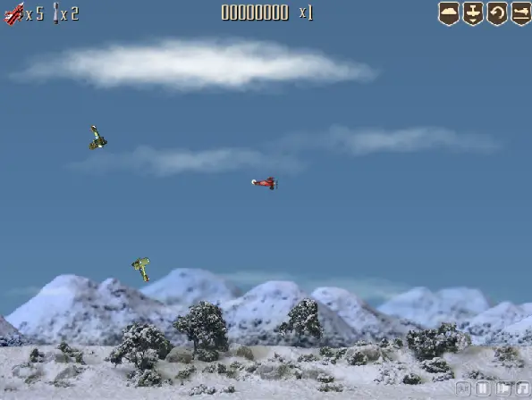 Arrow Keys - Fly. Spacebar - Shoot. Shift / CTRL - Drop Bombs.