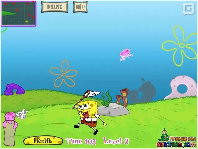 Spongebob need your help to catch jellyfish at the field and give them to sandy as present , se must loves it .