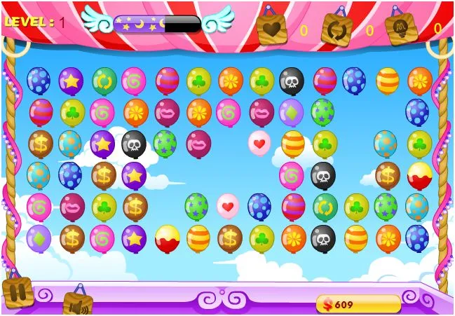 Colorful balloons are very beautiful in the blue sky. They are designed in different patterns, a big smile, red lips, special skeleton and so on. Come to collect some. A big surprise is waiting for you!