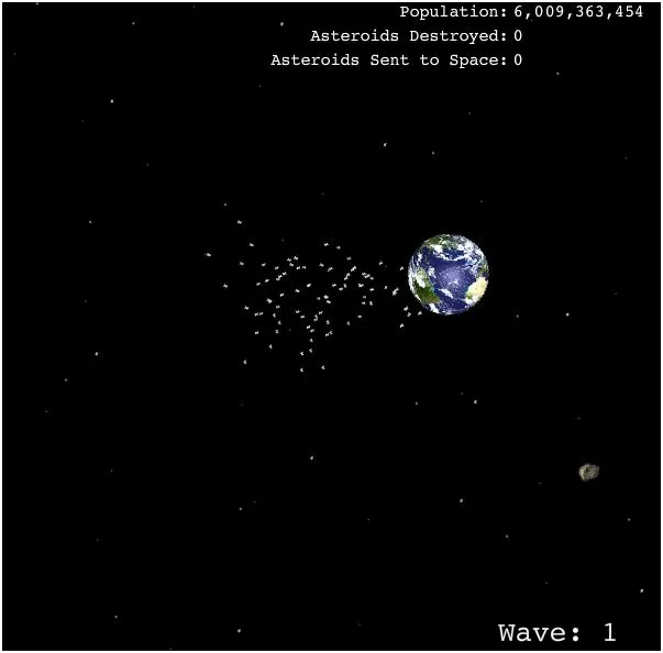 | Controls: | Use the mouse to move the earth around. Get asteroids to orbit you in order to lock on and destroy them. You must pick up items in a similar fasion (lock on and capture them not run into them!). For detailed instructions it is recommended that you view th |