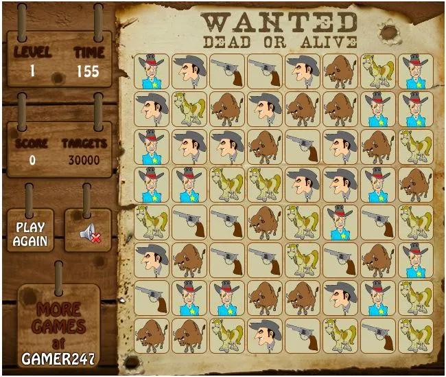 In this fun Wild West game, your task is to create groups of 3 or more of the same items in a horizontal or vertical direction.