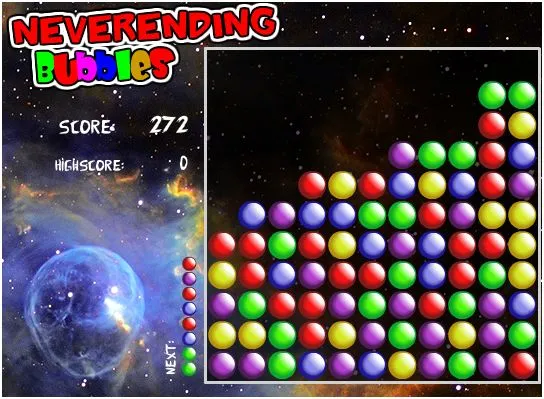 Destroy groups of two or more bubbles to get points. You lose if there are no more bubbles to destroy.