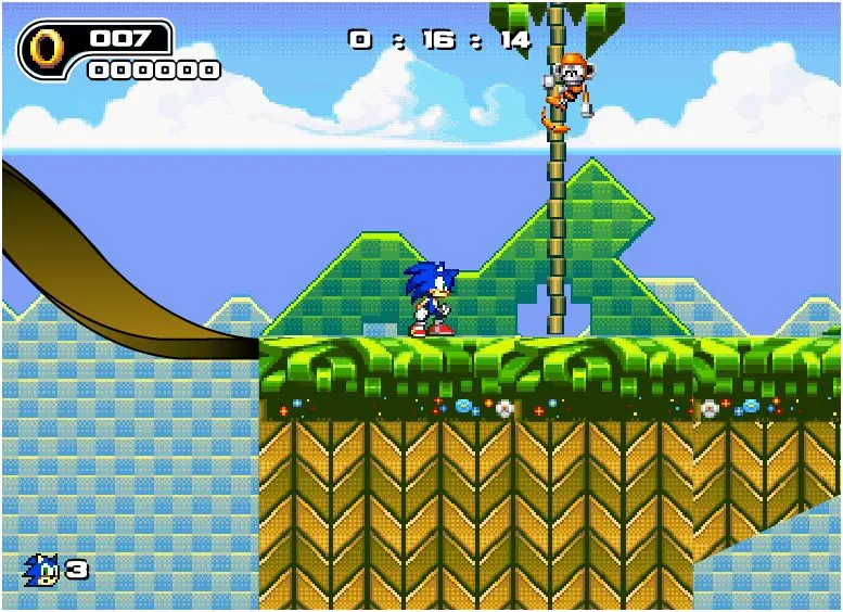A flash clone of the highly popular classic platform based on SEGA Sonic game.