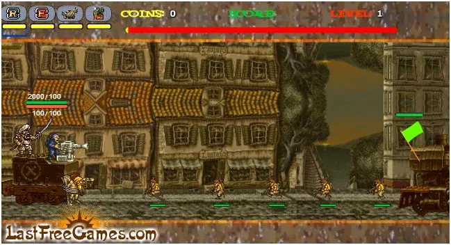 | Controls: | This is a very classic defensive game, the metal slug game you need to attack enemy all eliminate oh, come to challenge! Use the mouse operation, dragging the mouse launch artillery. |