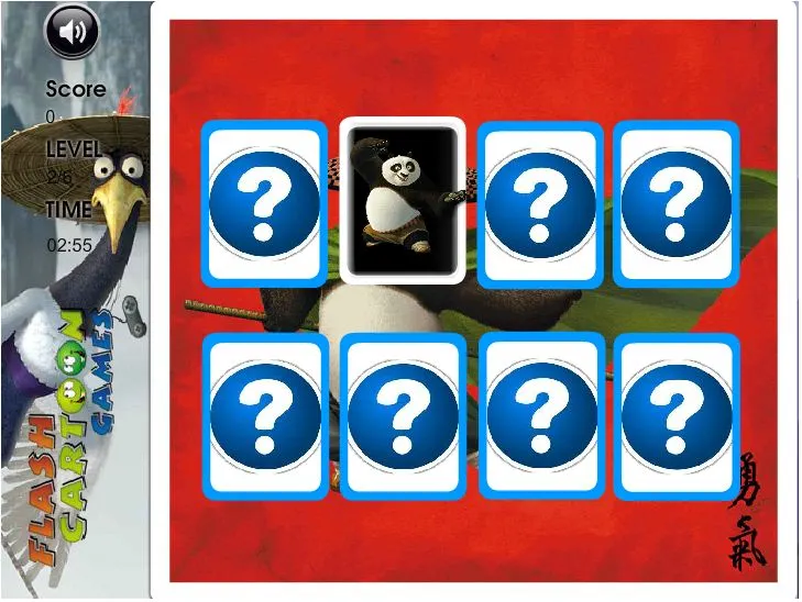 There are 6 levels to complete. Match the Kung Fu Panda characters to take them off the board before the time runs out.