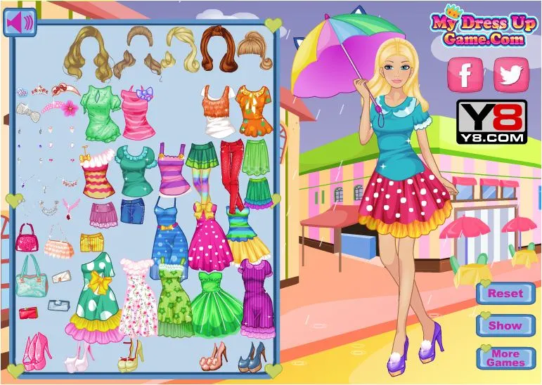 it is raining outside. Barbie bored at home and wants to go out for a walk. She got her umbrella. Now dress up barbie for a rainy day.