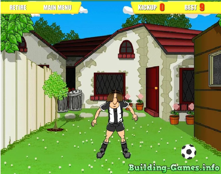 A simple keepie-up game, move the player under the ball to kick knee, or head it. There are also summersault kicks and dives in there somewhere. A high score will put you on the scoreboard.