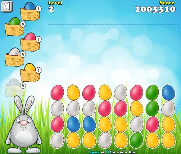 Help the Easter Bunny pack eggs to deliver for Easter. Line up 4 eggs of the same color to put them in the box. 5 eggs in a row will take out the whole line!